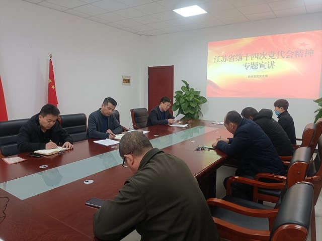 根據(jù)陸港集團黨委統(tǒng)一部署,1月5日下午,物資集團公司召開學習貫徹省第十四次黨代會精神專題宣講會,公司黨支部書記、副總經(jīng)理儲兵作主題宣講,紀檢委員、副總經(jīng)理周敦平主持宣講會,所屬子公司、部室全體黨員參加會議。