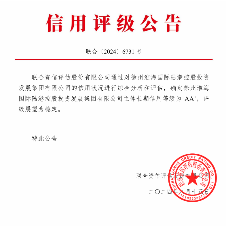 近日,經(jīng)國(guó)內(nèi)權(quán)威信用評(píng)級(jí)機(jī)構(gòu)聯(lián)合資信評(píng)估股份有限公司綜合評(píng)定,陸港集團(tuán)成功獲評(píng)AA+主體信用等級(jí),評(píng)級(jí)展望為“穩(wěn)定”。